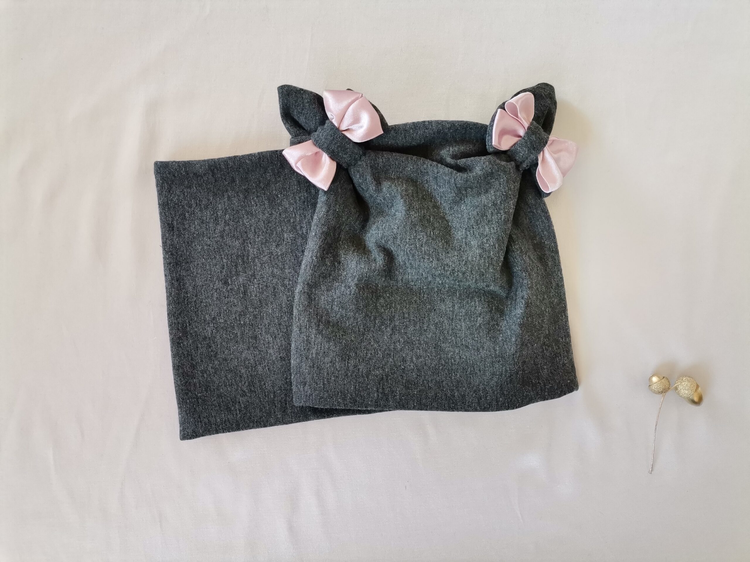 Medvilninis audinys leidžia odai kvėpuoti. Kepurė ir mova siuvama dvigubu audiniuo viduje esantis pūkelis maloniai šldo ir jūsų mažylis jaučiasi saugiai ir sušildytai. Kaspinai suteikia subtilios elegancijos, todėl kepurė puikiai tinka ir mergaitėms, norinčioms atrodyti žavingai kiekvieną dieną.