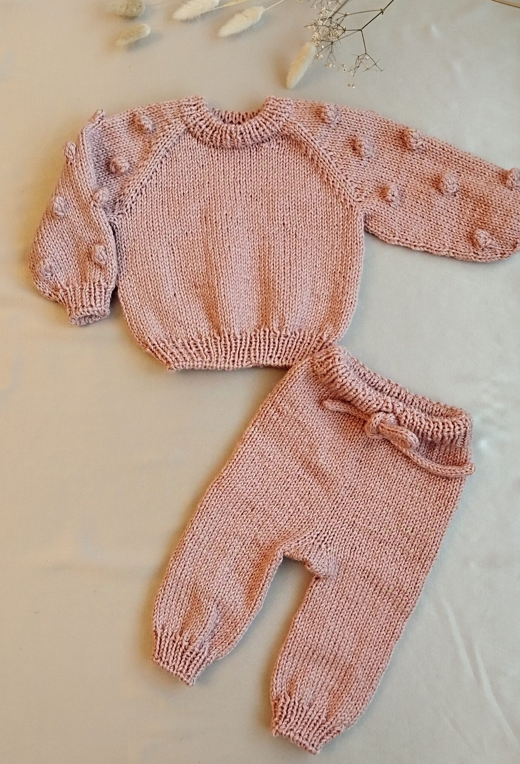 Komplektukas siūlomas keturiomis žavingomis spalvomis, kurias lengvai galima derinti su kitais mūsų asortimento gaminiais – tapukais, kojinytemis ar kepurėlėmis. Tokiu būdu galite sukurti pilną, stilingą ir patogų aprangos derinį savo mažyliui. Megztukas puošiamas mielais burbuliukais, o kelnytės turi subtilias reljefines juosteles, kurios suteikia dizainui žaismingumo ir tekstūros. Šis derinys ne tik atrodo nuostabiai, bet ir yra pritaikytas tiek mažylėms, tiek mažyliams – minkštas, nevaržantis judesių ir lengvai dėvimas.