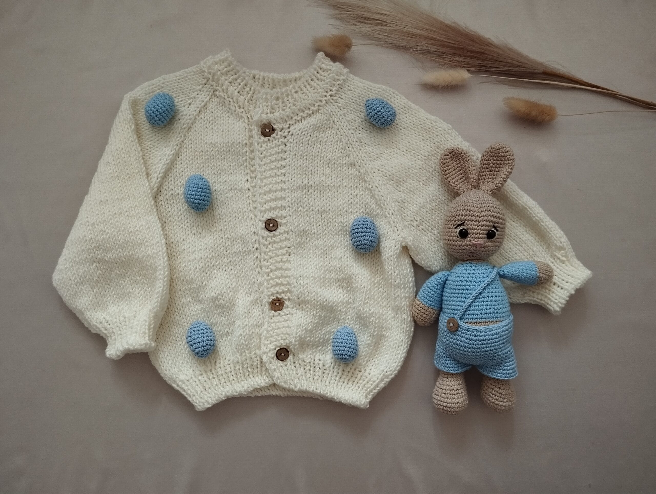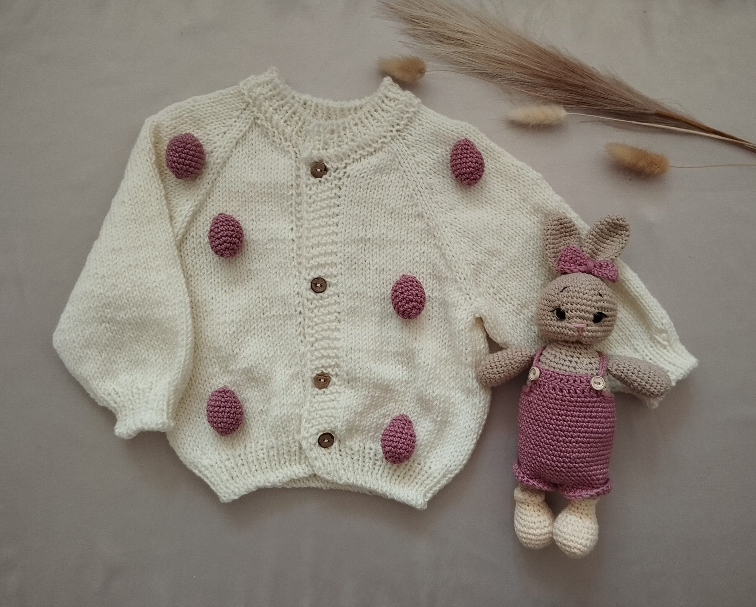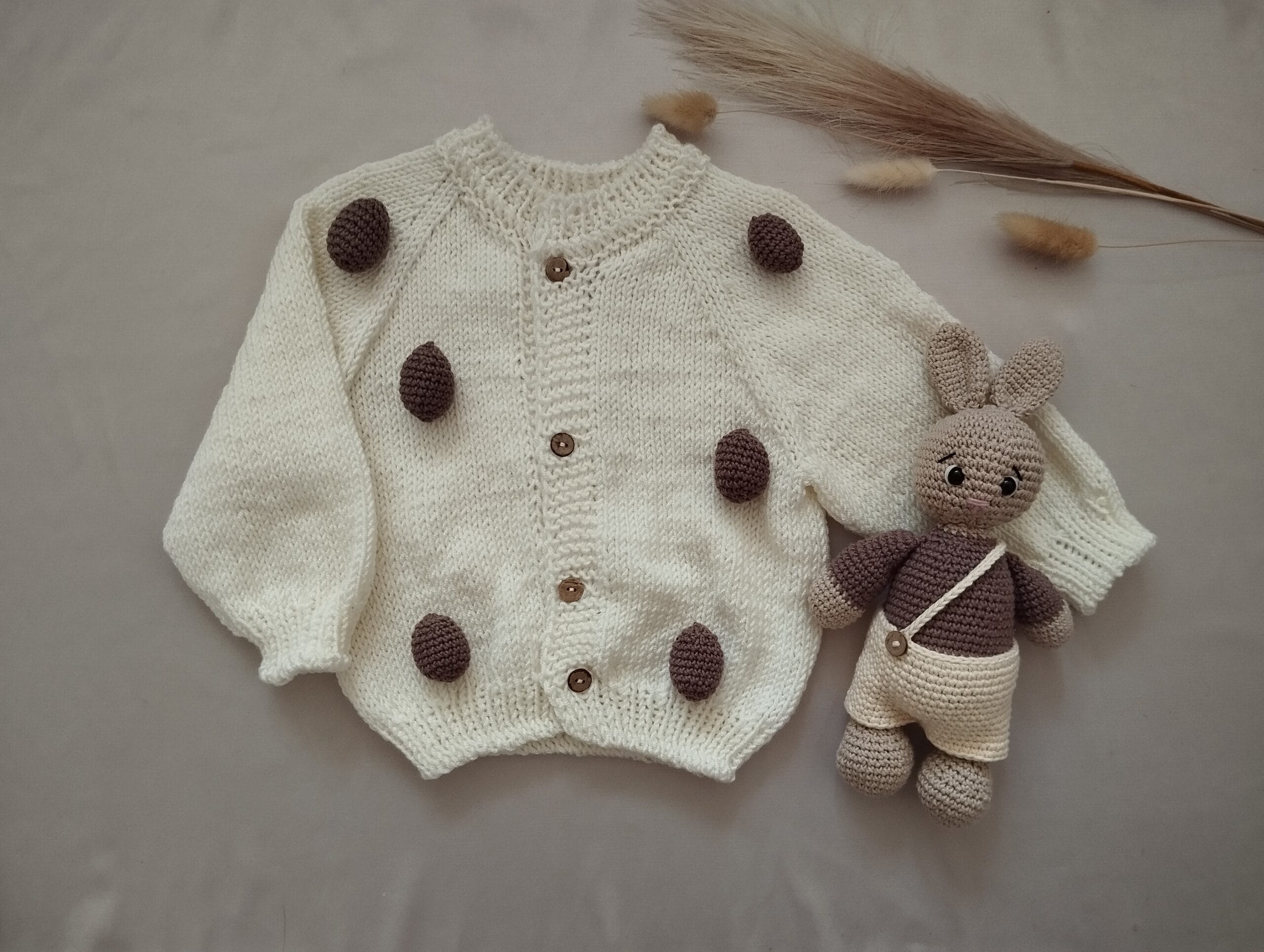 Šis rinkinys yra idealus pasirinkimas tiek perkant tiesiog tėveliams, tiek aplankant naujus tėvelius su kūdikiu. Švelnus, natūralus, rankų darbo kiškutis kartu su medvilnės megztuku taps ne tik miela dovana, bet ir vertinga kasdienio naudojimo dalimi. Leiskite mažyliui turėti draugą ir šiltą megztuką – tai rinkinys, kuris ne tik džiugina akį, bet ir suteikia saugumo bei jaukumo jausmą kiekvieną dieną.