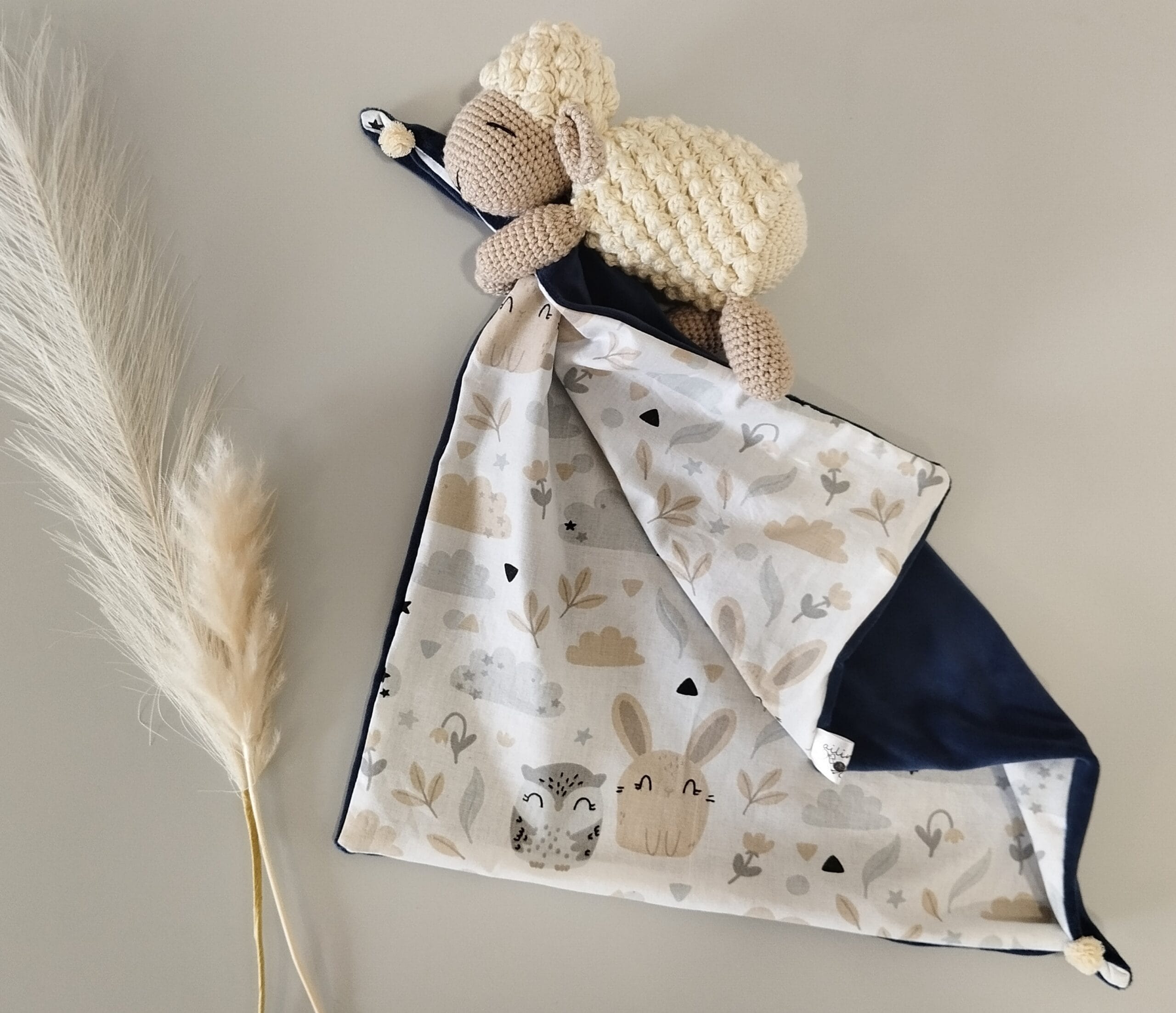 Migduko dydis – apie 35 × 40 cm, todėl jis patogus mažoms rankytėms laikyti, nešiotis ar miegoti šalia. Prie migduko pritvirtinta nerta avytė, kurios dydis apie 15 × 12 cm, suteikia žaislui išskirtinumo ir papildomo jaukumo. Avytė lengvai nusiima nuo audinio, todėl migduką patogu skalbti, o pati avytė gali tapti atskiru, mylimu žaisliuku kūdikiui. Toks sprendimas leidžia migduką naudoti įvairiais būdais ir ilgiau išlaikyti jį kasdienėje mažylio rutinoje. Rankų darbo migdukas Avytė ne tik ramina, bet ir skatina smalsumą, savarankišką žaidimą bei emocinį ryšį su pirmuoju žaislu.