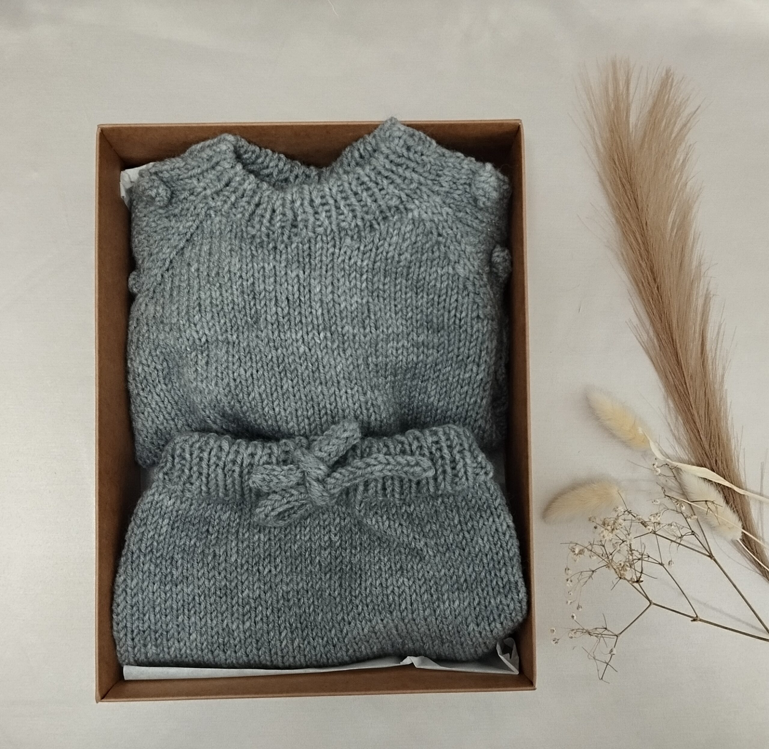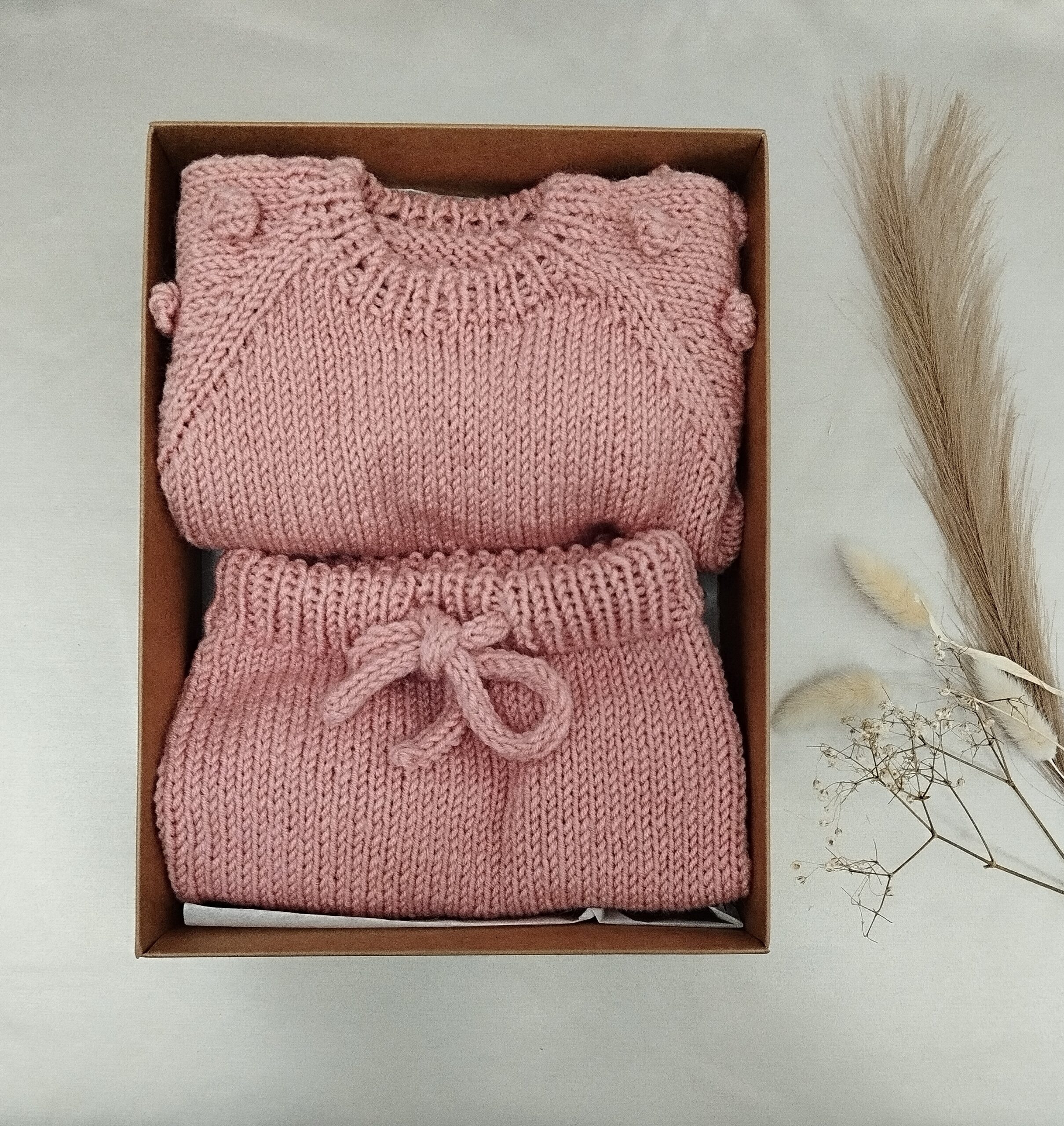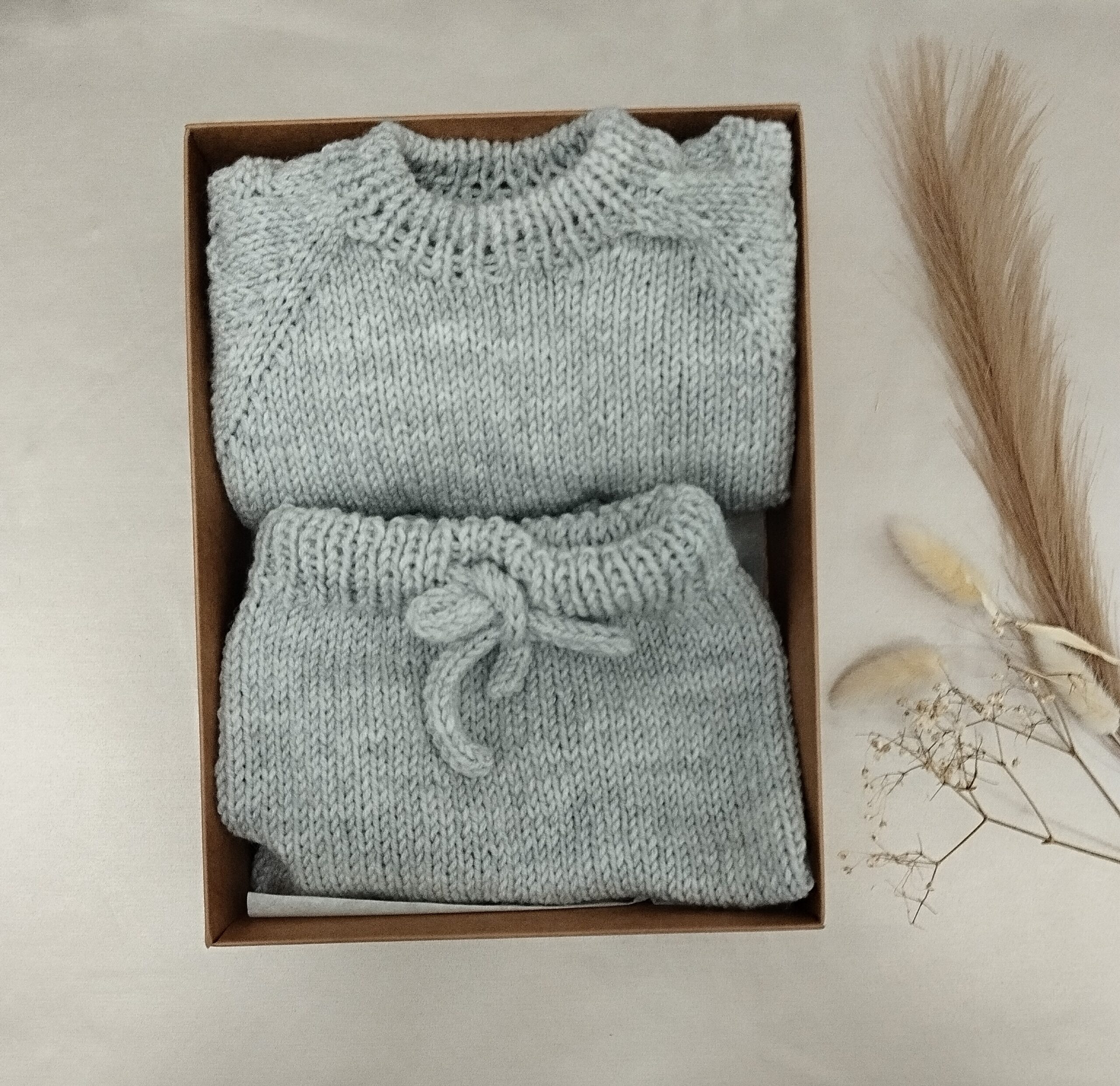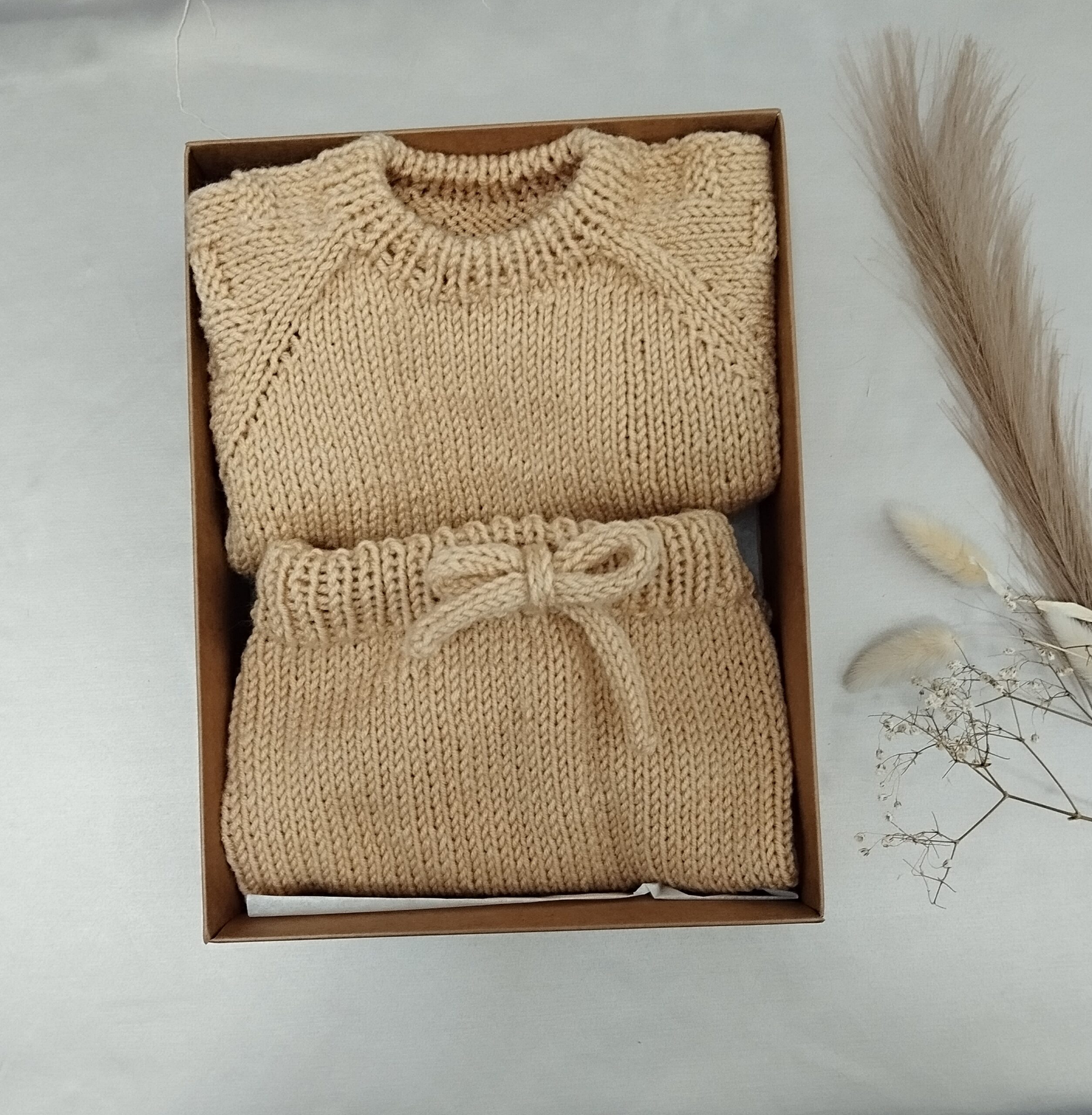 Megztuko ir kelnyčių komplektukas megztas nuo 0-9mėn amžiaus.
