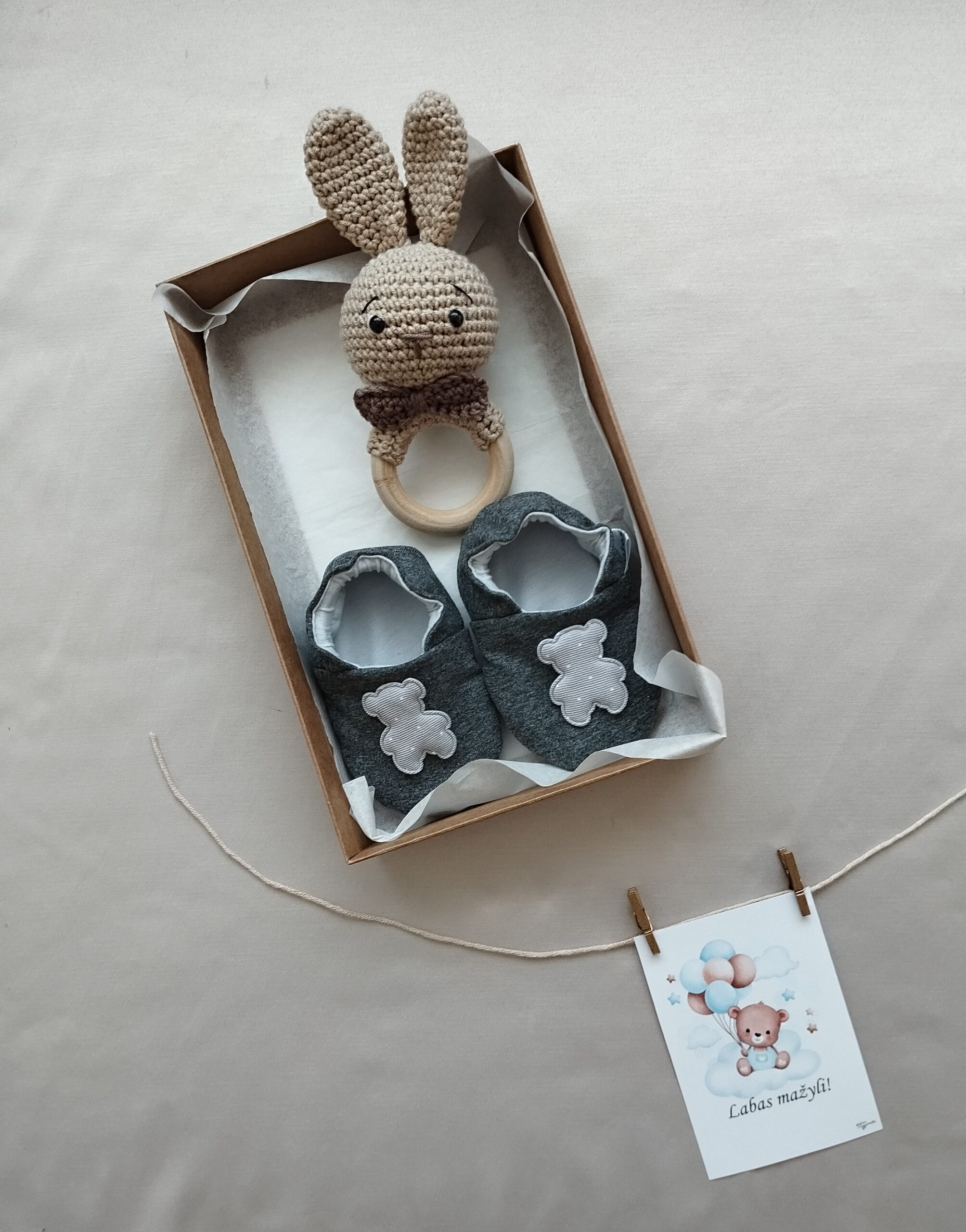 Šis mielas rinkinukas – tai švelnumas, jaukumas ir pirmieji mažylio atradimai vienoje dovanėlėje!