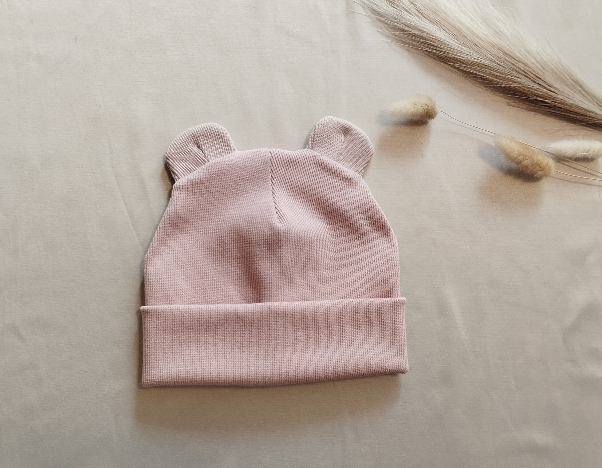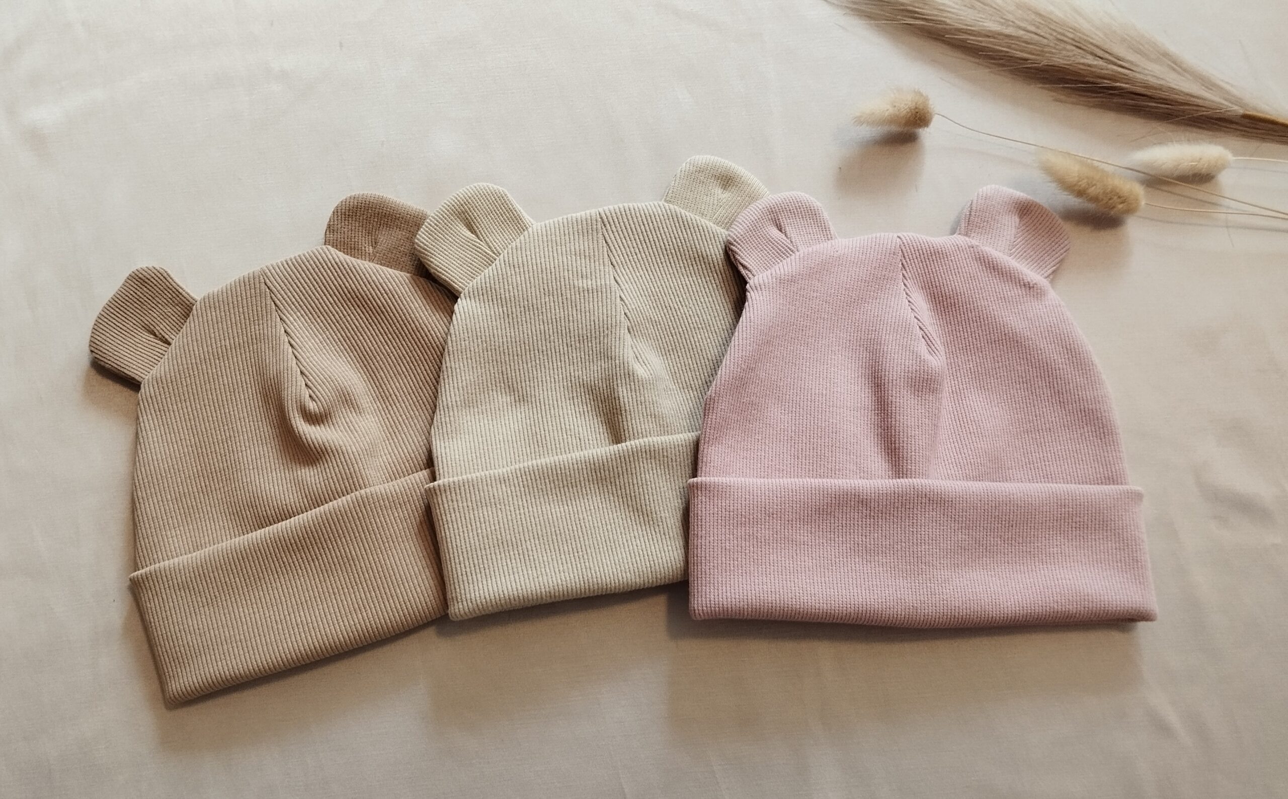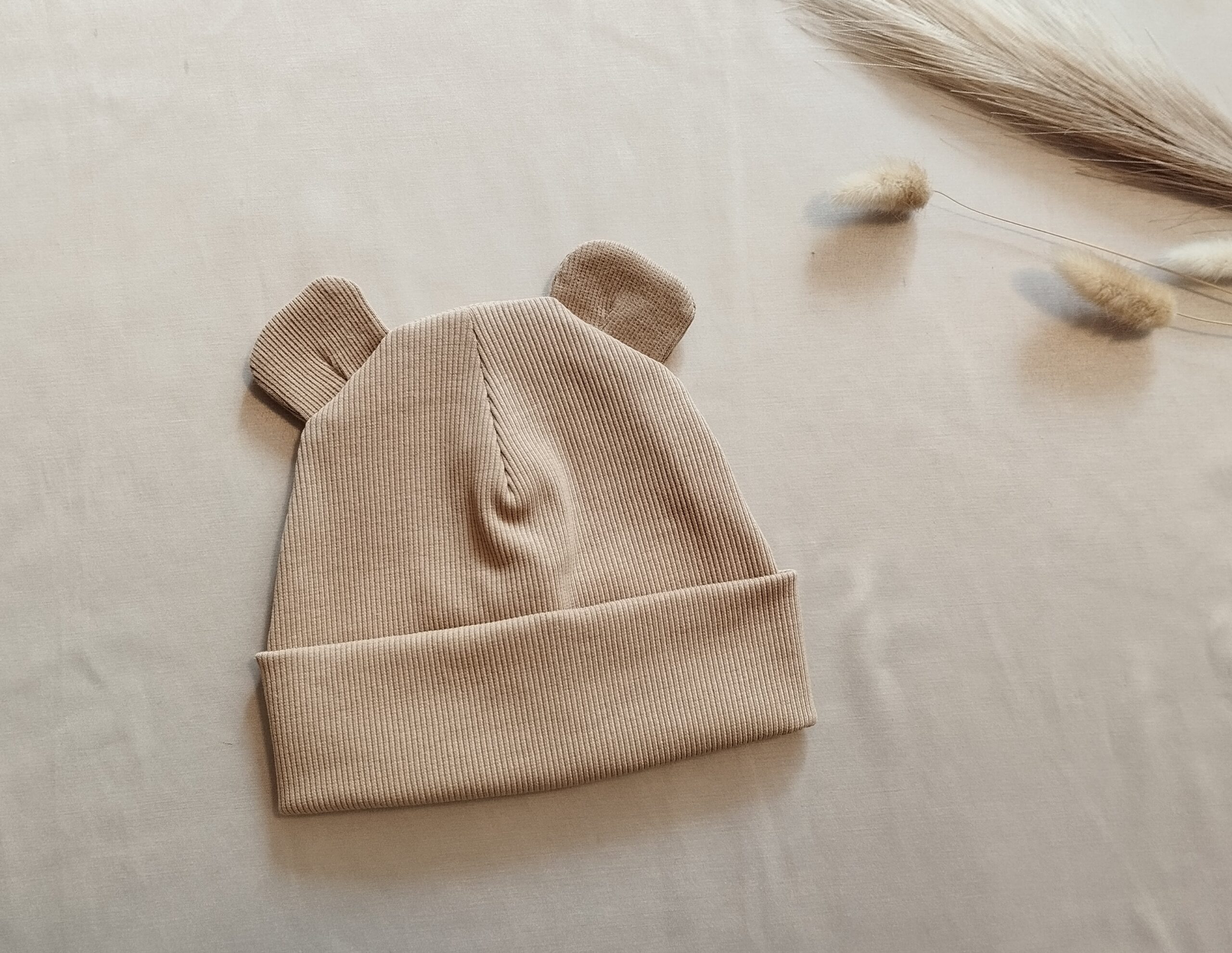 Žavios ausytės – mielam įvaizdžiui. Kvėpuojantis ir tamprus rib audinys – komfortas visą dieną. Gerai laikosi – nevaržo ir nesmunka.Tinka nuo pirmųjų dienų – dailiai apgaubia net ir naujagimio galvytę